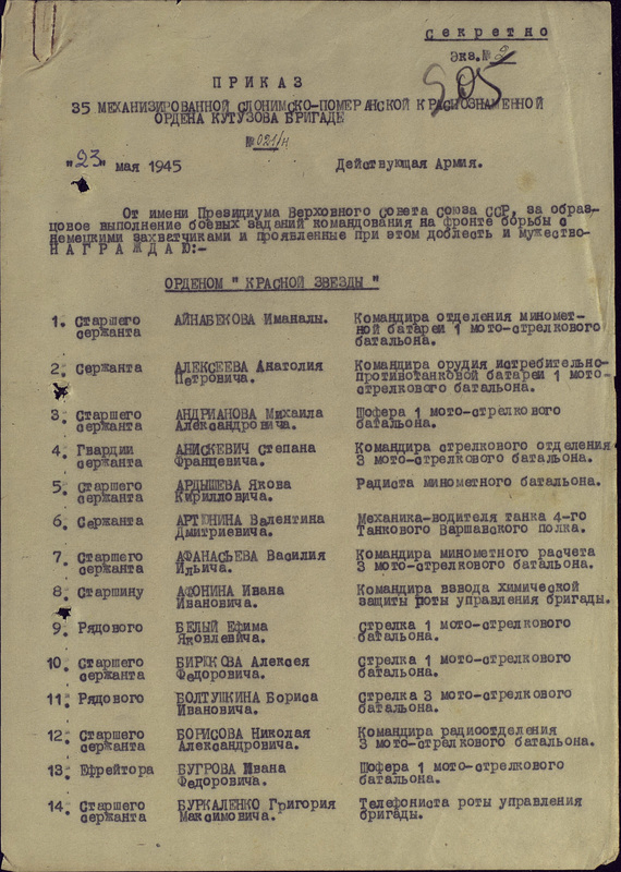 Награды, звания: Орден Красной Звезды, Медаль Славы 3степени, медаль за взятие Берлина, медаль за освобождение Варшавы